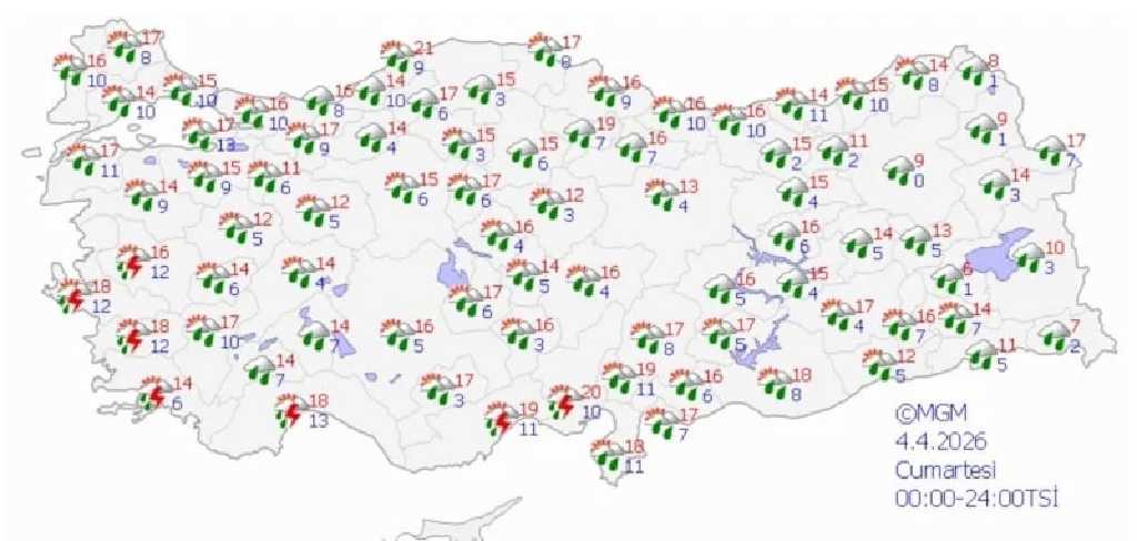 Güneydoğu Anadolu’da Gaziantep, Kilis, Adıyaman ve Şanlıurfa çevrelerinde yerel kuvvetli sağanak tahmin edilirken; Balıkesir’in batısı ile Çanakkale’de de aralıklı ve etkili yağış görülecek.