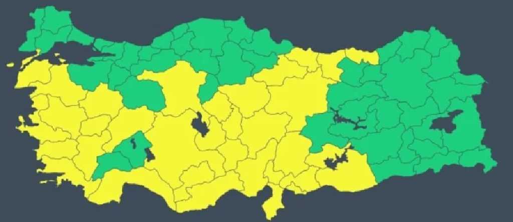 Sarı kodla uyarılan iller arasında Adana, Adıyaman, Afyonkarahisar, Ankara, Antalya, Aydın, Balıkesir, Çanakkale, Denizli, Gaziantep, Giresun, Hatay, Mersin, İzmir, Kayseri, Kırşehir, Konya, Kütahya, Manisa, Kahramanmaraş, Muğla, Nevşehir, Niğde, Ordu, Sivas, Tokat, Trabzon, Şanlıurfa, Uşak, Yozgat, Aksaray, Karaman, Kilis ve Osmaniye yer aldı.