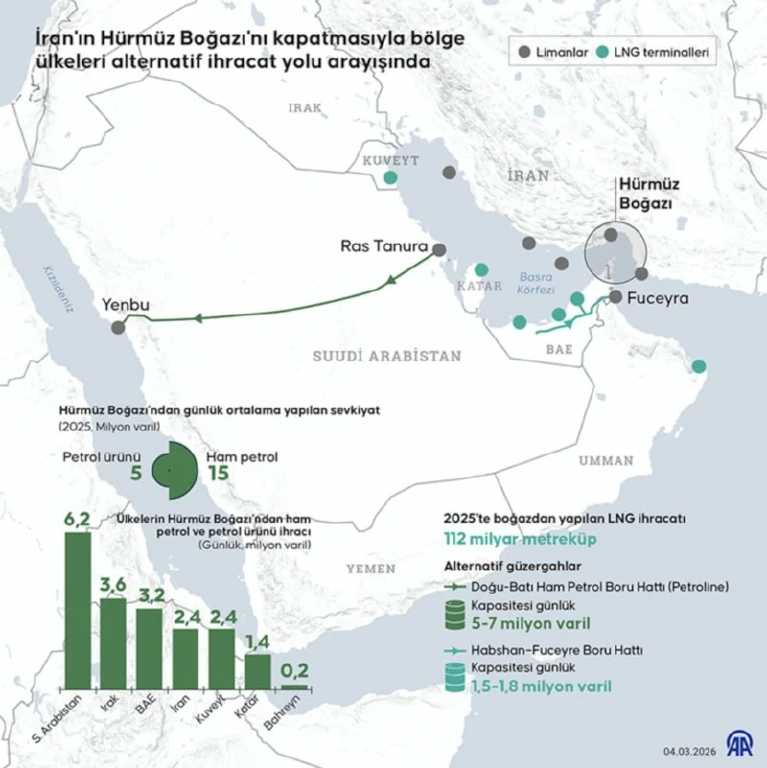 İran ayrıca Körfez bölgesindeki bazı petrol tesislerini de hedef aldı. Suudi Arabistan, Katar, Kuveyt ve Bahreyn’deki enerji altyapısına yönelik drone ve füze saldırıları gerçekleştirildi.