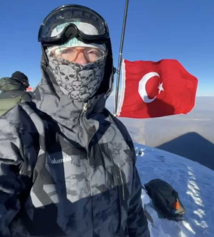 Hava şartlarının zorlamasına rağmen zirve tırmanışını tamamlayan grup, zirvede Türk bayrağını dalgalandırdı.