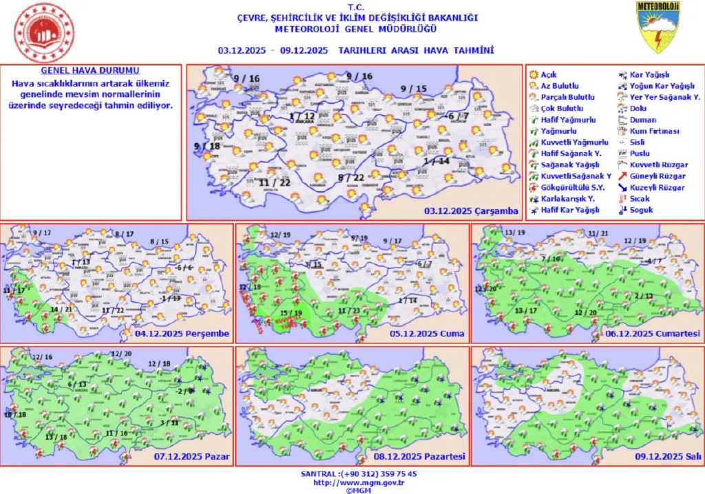 Afet İşleri ve Risk Yönetimi Dairesi Başkanı Ergün Cebeci, yaptığı değerlendirmede aralık ayının yağış açısından mevsim normallerinde geçmesini beklediklerini söyledi. Cebeci, sıcaklıkların aralık ayının son haftasında kış değerlerine ineceğini belirtti.