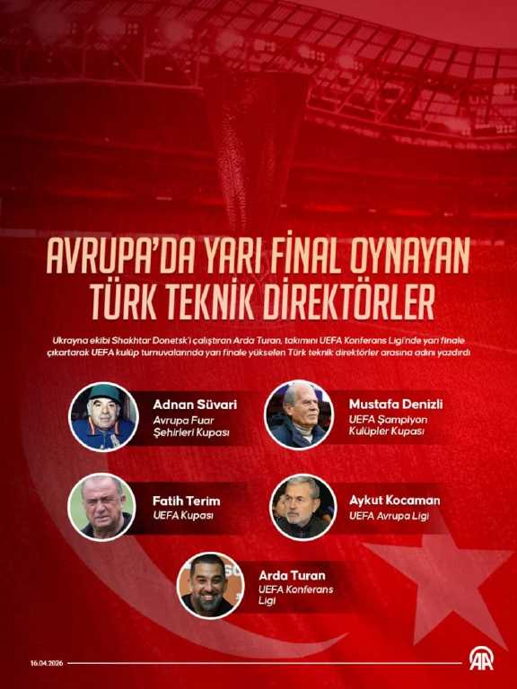 Avrupa kupalarında yarı final gören Türk teknik direktörler arasında Adnan Süvari, Mustafa Denizli, Fatih Terim ve Aykut Kocaman da bulunuyor.
