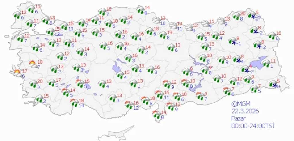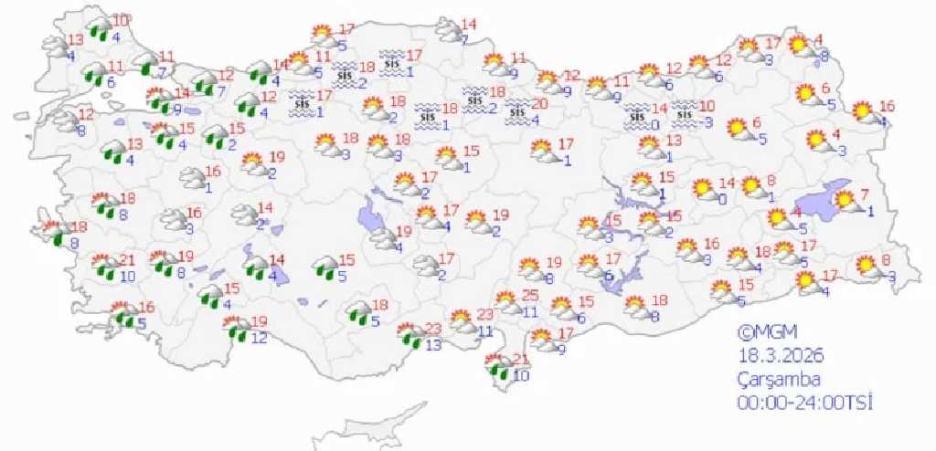 Hafta ortasına kadar parçalı ve yer yer güneşli bir hava beklenirken, özellikle batı ve güney bölgelerde sıcaklıklar 18-23 dereceye kadar çıkacak. İç ve doğu kesimlerde ise sıcaklıkların 10-17 derece aralığında seyretmesi öngörülüyor. Doğu bölgelerinde yer yer karla karışık yağmur ve hafif kar geçişleri görülebilecek.