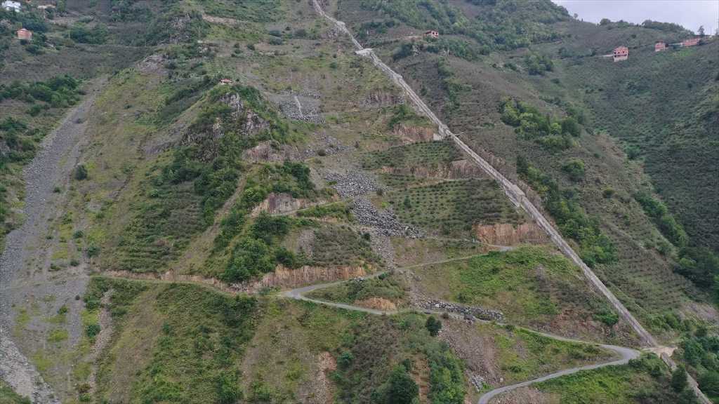 Ordu'nun Kabadüz ilçesine bağlı Özlükent Mahallesi'nde 2011 yılında yapılan hidroelektrik santrali (HES) için ilgili firma tarafından dağın yamacına yapılan yol, ilgi çekiyor.