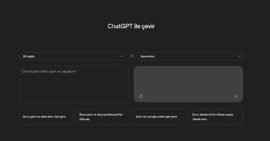 Bu aracın standart çeviri sistemlerinden ayrıldığı noktalardan biri işlem sonrası sohbet imkanı sunması. Kullanıcılar yapılan çeviri üzerine sorular sorabiliyor, anlamı bozmadan düzenleme talep edebiliyor veya metin türüne göre iyileştirme isteyebiliyor. Böylece çeviri tek işlemden ibaret olmaktan çıkıp etkileşimli bir sürece dönüşüyor.