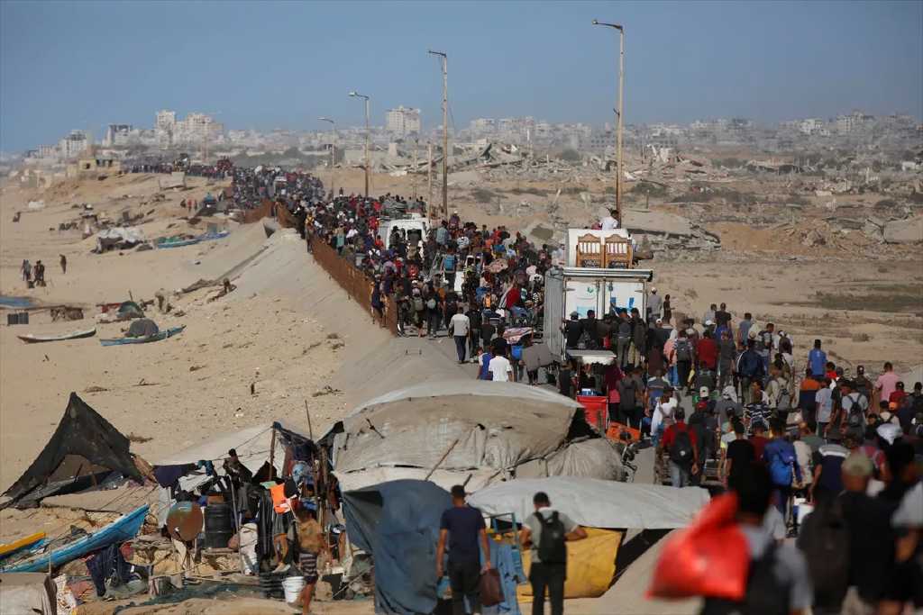 Bazı aileler çocuklarını omuzlarında taşırken, bazıları da eşyalarını ellerinde taşıdı. Savaşın geride bıraktığı yıkıntılara rağmen Filistinliler, evlerine geri dönmenin umuduyla kuzeye yürümeye devam ediyor.