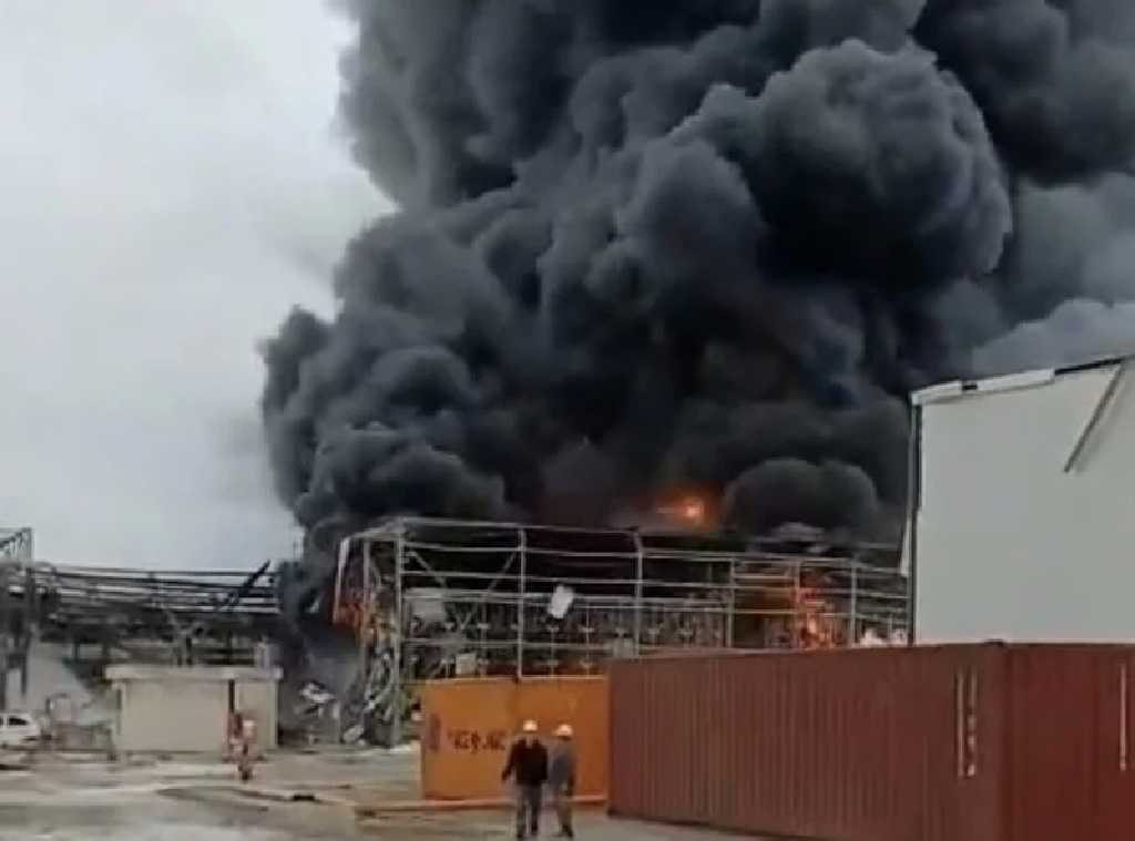 Saldırının ardından endüstriyel tesislerin bulunduğu alanda çıkan yangın kısa sürede büyüdü. Bölgeden gelen görüntülerde alevlerin tesisleri sardığı, çalışanların ise hızla tahliye edildiği görüldü.