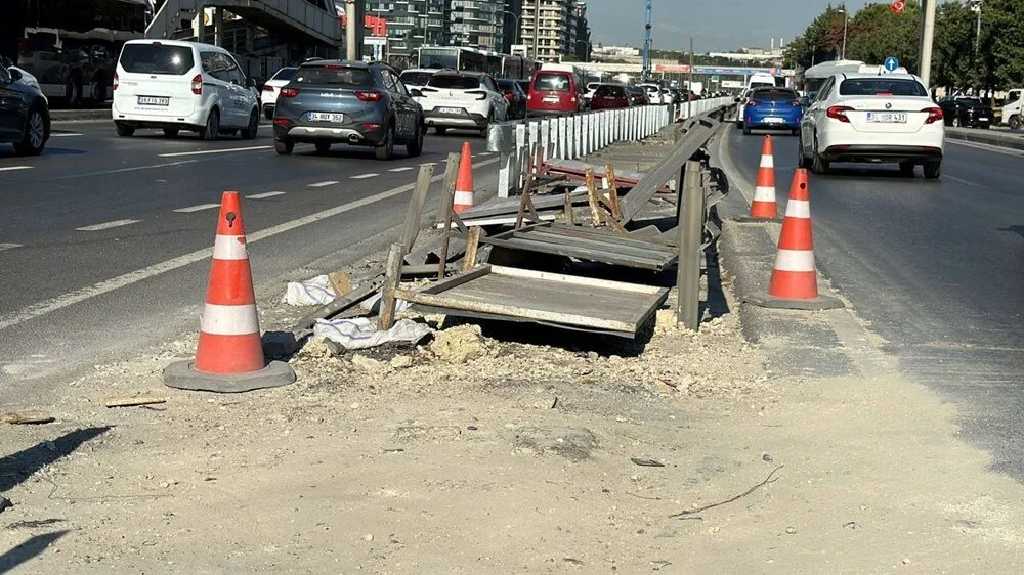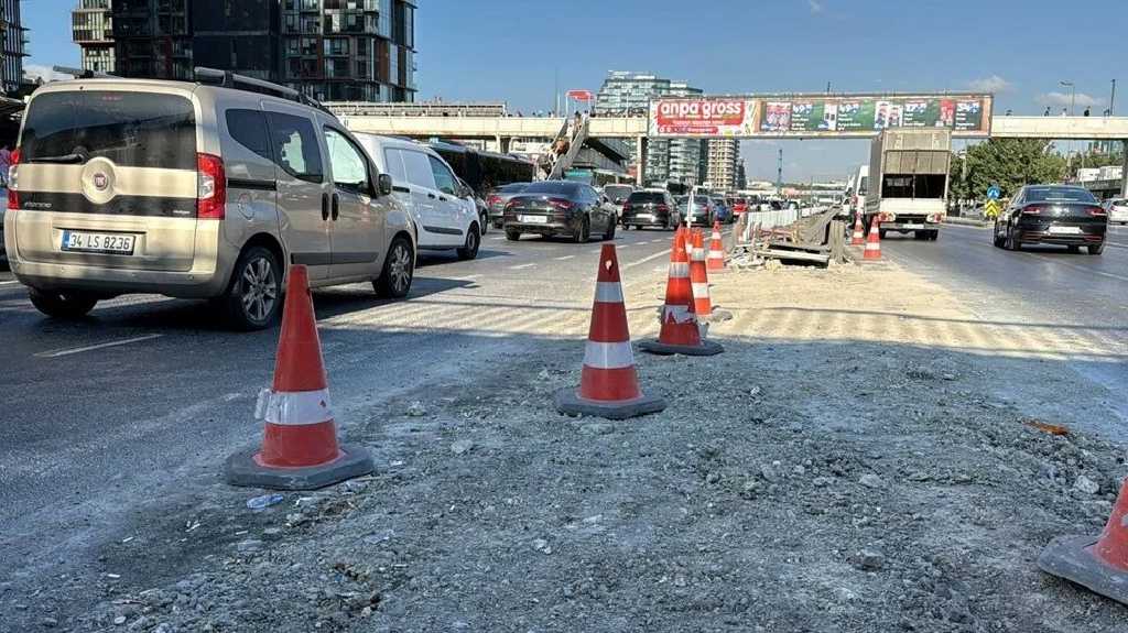 Çalışmalar kapsamında İBB Sosyal Tesisler durağının bariyeri kaldırıldı ve yola dubalar yerleştirildi.