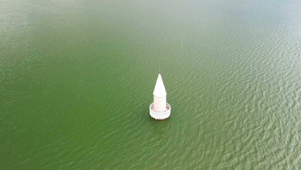 Su altında kalan evler, sokaklar, tarihi kilise, tarihi çarşı ve okul artık görünmezken, sadece caminin minaresi göğe uzanır şekilde ayakta kaldı.