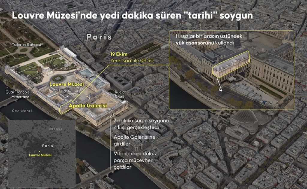 Fransa’da kültürel mirasın kalbi olarak görülen Louvre Müzesi’nde yaşanan bu olay büyük yankı uyandırdı. Fransız basını, müze tarihindeki en ciddi güvenlik zafiyetlerinden biri olarak nitelendirdiği soygunun ardından hükümete yönelik eleştirileri gündeme taşıdı.