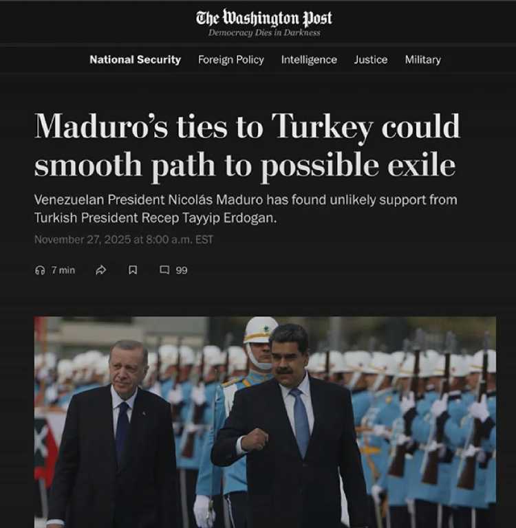 Washington Post, iki lider arasındaki siyasi yakınlık ve ekonomik iş birliğinin Maduro’nun Türkiye’yi potansiyel bir kaçış noktası olarak görmesini güçlendirdiğini aktardı. Türkiye’nin Venezuela ile yaptığı altın ticareti, enerji anlaşmaları ve diplomatik temaslar da analizde hatırlatıldı.