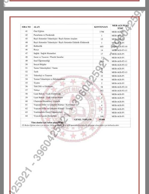 KONTENJAN DAĞILIMLARI VE BRANŞ ÖNCELİKLERİ