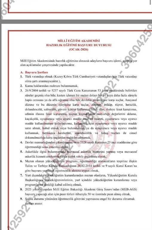 MEB, hazırlık eğitimine başvuracak adayların ilgili alan için 2025 MEB-AGS’den en az 50 puan almış olması gerektiğini bildirdi. Başvuru değerlendirmeleri puan üstünlüğüne göre yapılacak.