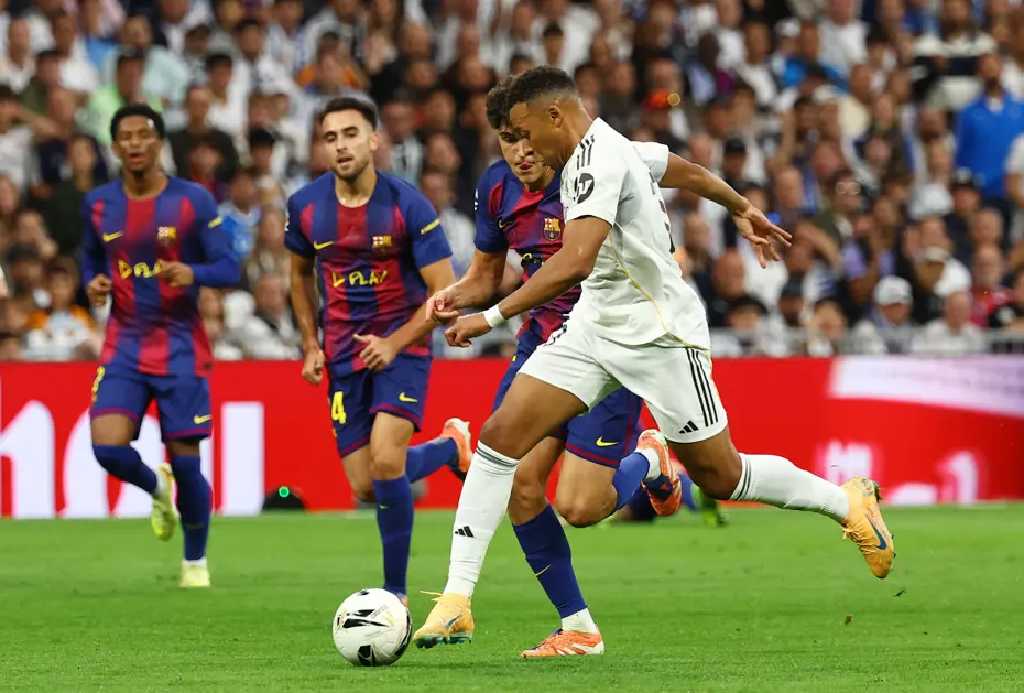 Bernabéu’da oynanan derbide ilk gol 22. dakikada Kylian Mbappé’nin savunma arkasına sarktığı pozisyonda geldi. Barcelona 38. dakikada Fermín López ile eşitlik sağlasa da 43. dakikada Jude Bellingham’ın golüyle Real Madrid yeniden öne geçti. Maçın ilerleyen dakikalarında Barcelona fazla üretken olamazken, 50. dakikada Real Madrid’e verilen penaltıyı Mbappé kaçırdı ve Barcelona kalecisi Wojciech Szczęsny başarılı bir kurtarış yaptı. Son dakikalarda da Barcelona oyuncusu Pedri 90+9’da kırmızı kart gördü ve maçın atmosferi iyice gerildi.