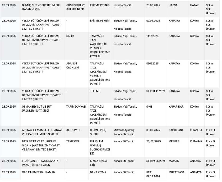 Tarım ve Orman Bakanlığı, gıda güvenliği kapsamında yaptığı son denetimlerin ardından, sağlığı tehlikeye atan ürünler listesine yeni firmalar ve ürünler ekledi.