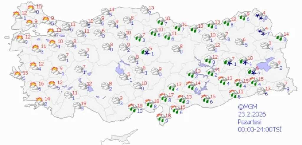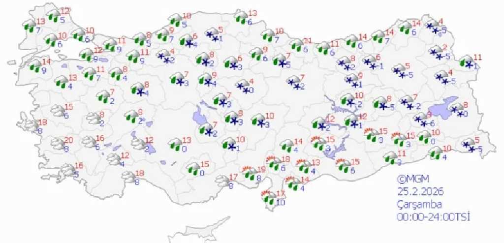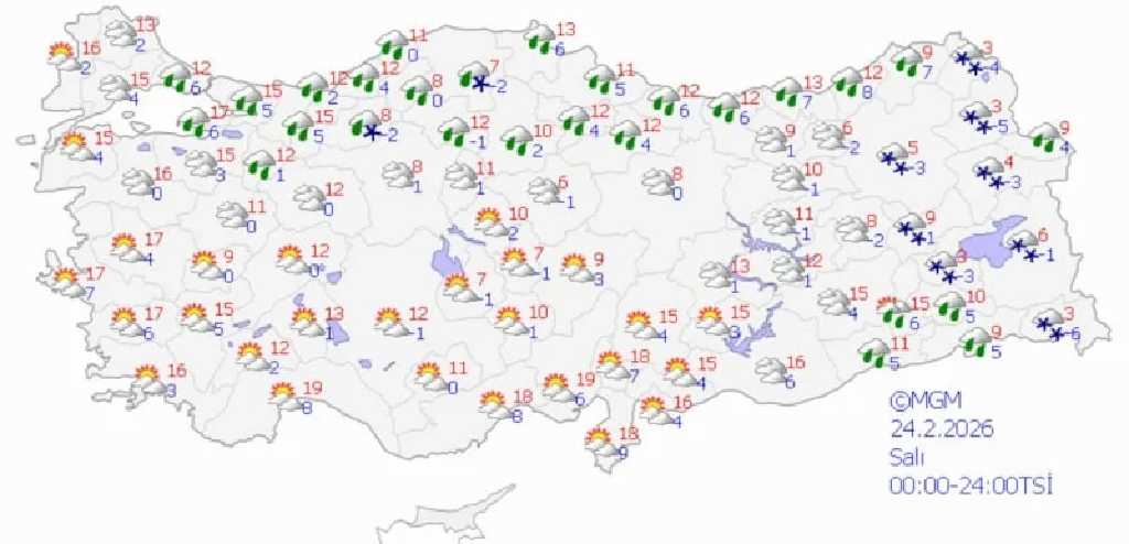 Salı günü yağışlı sistem doğu kesimlere kayarken batı ve güney bölgelerde hava açacak. Marmara ve Ege’de parçalı bulutlu hava görülmesi, doğu kesimlerde ise yer yer kar yağışının sürmesi bekleniyor. Çarşamba günü batıda sıcaklıkların 12-18 dereceye kadar yükselmesi öngörülürken doğuda değerlerin 2-10 derece civarında kalacağı tahmin ediliyor.