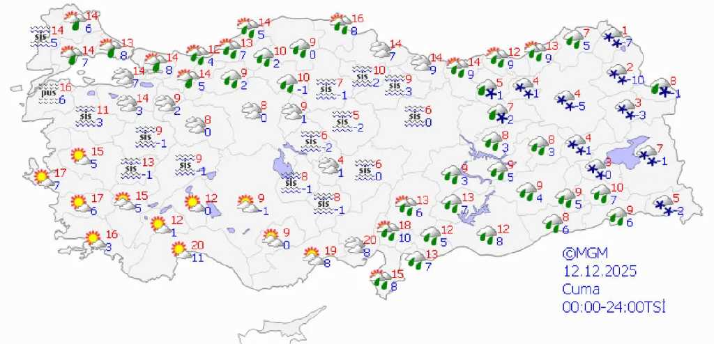 Meteoroloji Genel Müdürlüğü’nün son tahminlerine göre Türkiye genelinde yağışlı ve soğuk hava etkisini sürdürüyor.