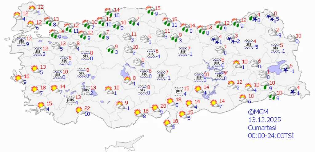 Meteoroloji Genel Müdürlüğü’nün son tahminlerine göre Türkiye genelinde yağışlı ve soğuk hava etkisini sürdürüyor. Parçalı ve çok bulutlu havanın hakim olacağı yurtta, birçok bölgede yağmur ve sağanak beklenirken yüksek kesimlerde kar yağışı öngörülüyor.