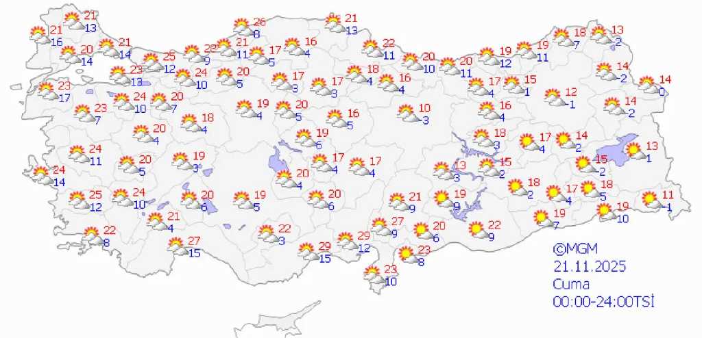 Meteoroloji Genel Müdürlüğü’nün son raporlarına göre Türkiye, kasım ayının ortasında adeta yazdan kalma bir hava dalgasının etkisi altında. Cezayir üzerinden gelen sıcak hava akımını taşıyan lodos, yurt genelinde sıcaklıkları mevsim normallerinin 5-6 derece üzerine taşıyacak. Birçok kentte sıcaklık 20 derecenin üzerine çıkarken, Antalya’da termometrelerin 29 dereceyi göstermesi bekleniyor.