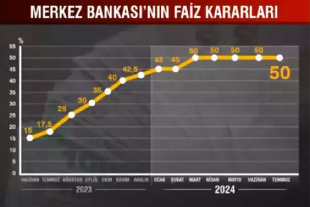 Türkiye Cumhuriyet Merkez Bankası (TCMB), Para Politikası Kurulu (PPK) temmuz ayında politika faizini yüzde 50 seviyesinde sabit bıraktı.