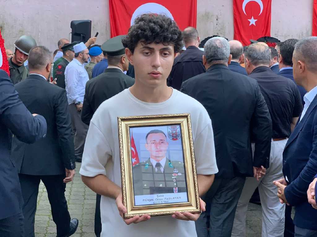 Irak'ın kuzeyinde teröristlerle çıkan çatışmada şehit olan 29 yaşındaki Piyade Üsteğmen Ömer Fatih Ayar, memleketi Trabzon’un Köprübaşı ilçesinde toprağa verildi. 10 gün önce Teğmen iken terfi alarak Üsteğmen olan şehit Ayar'ın son yolculuğunda fotoğrafını kardeşi Ahmet Ayar taşıdı.