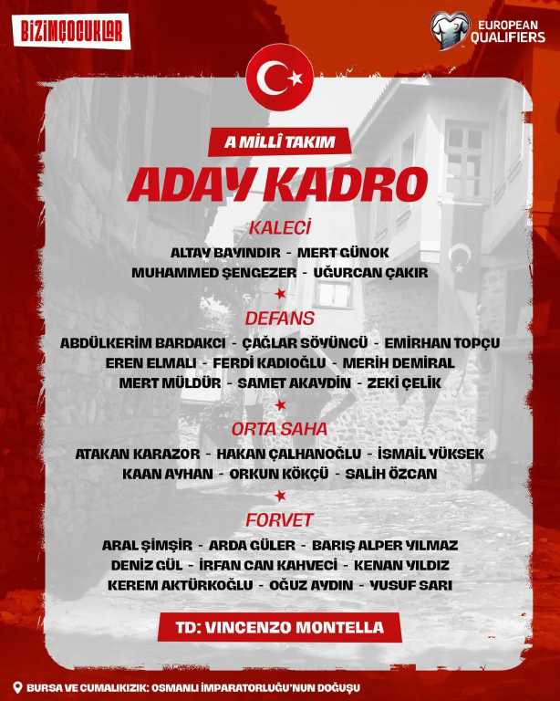 Kaan Ayhan, Emirhan Topçu ve Yusuf Sarı, yeniden milli takım kadrosuna çağrılan isimler arasında yer aldı. Teknik direktör Vincenzo Montella’nın kadro tercihlerinde savunma ve hücum hattında yeniden şekillendirme yaptığı görüldü.