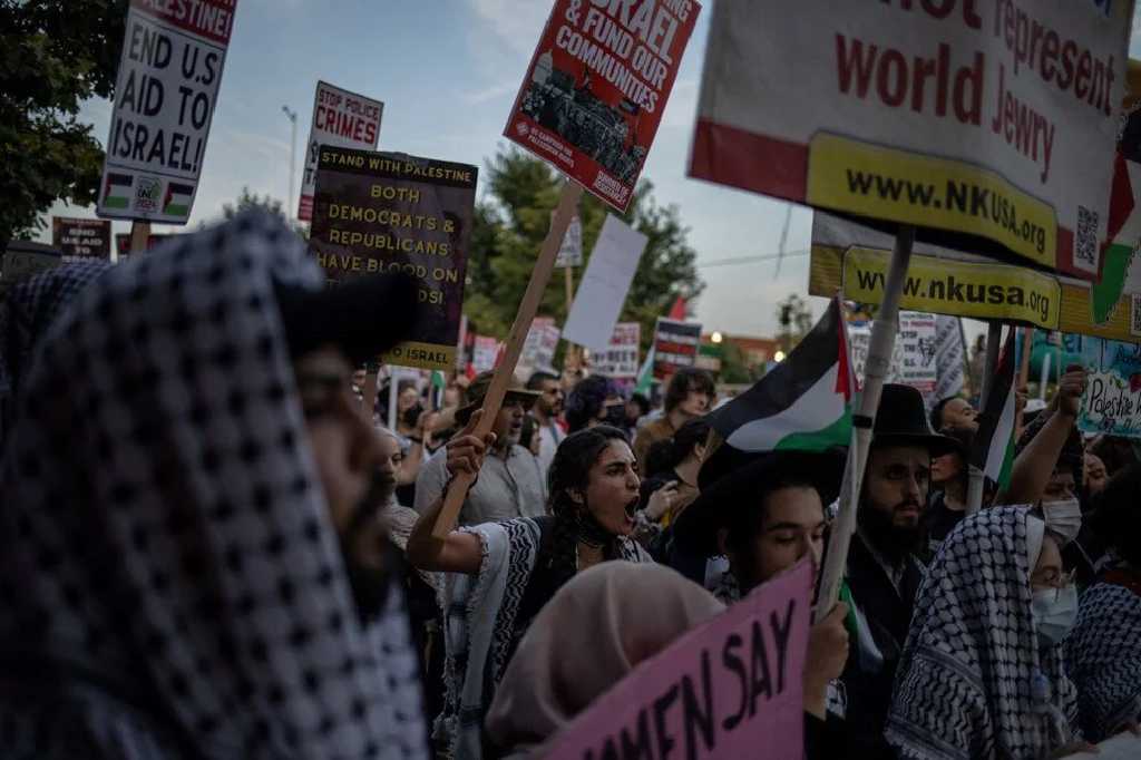 Filistin destekçileri, Kongre'nin ilk gününden itibaren United Center'ın dışında Amerika'nın İsrail'e desteğini protesto ediyor.