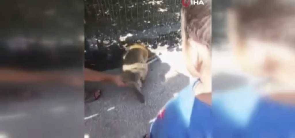Seyhan'da sahibinin tasmayla gezdirdiği bir maymun, kendisini sevmek isteyen tişörtünde maymun resmi olan bir çocuğa saldırdı.
