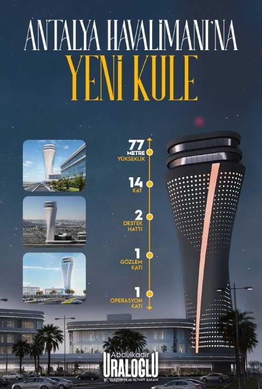 Bakan Uraloğlu, açıklamasında yeni yapının mimari açıdan da büyük önem taşıdığını belirterek, “Yeni kulemiz sadece bir hava trafik binası değil; aynı zamanda Antalya’nın simgelerinden biri olacak.” dedi.