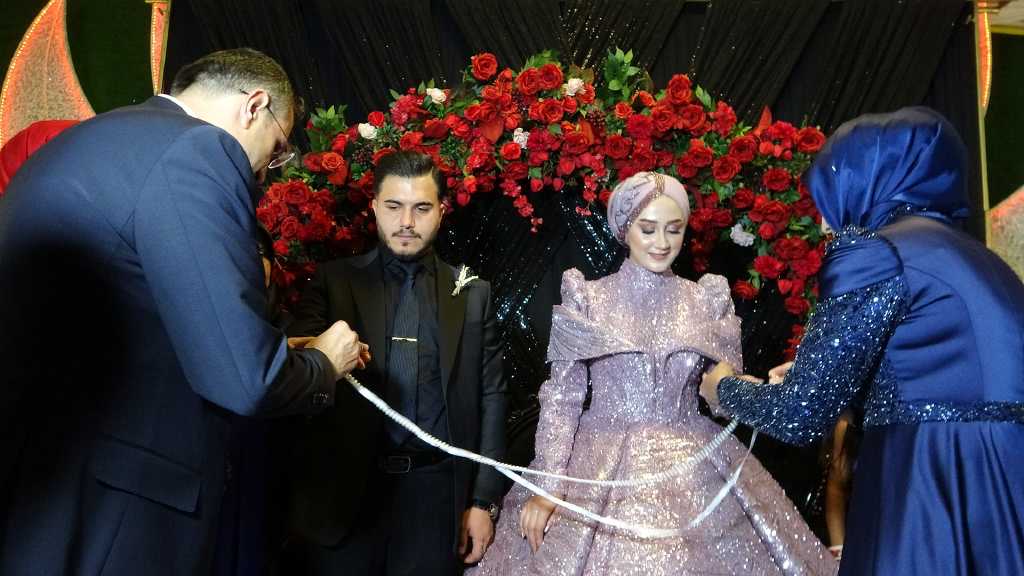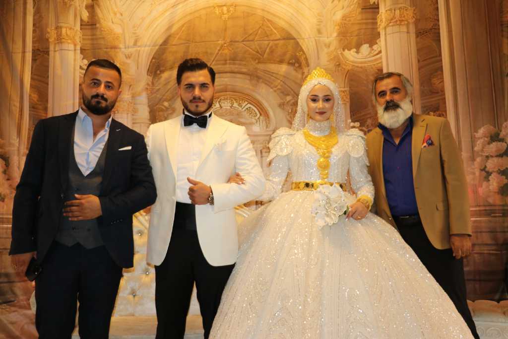 Yurt içi ve yurt dışından yaklaşık 7 bin kişinin katılım sağladığı düğün töreni, son dönemlerin en yoğun katılımlı düğünü olurken, gelin ve damada takılan takılar ise dudak uçuklattı.