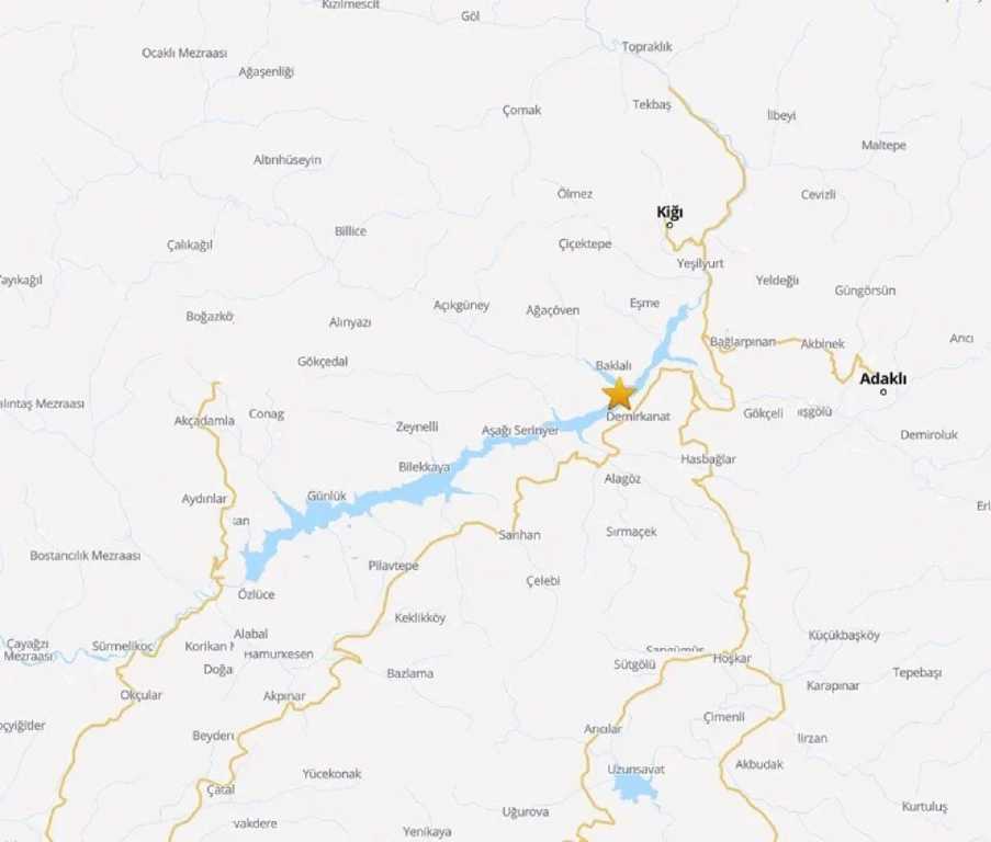 Afet ve Acil Durum Yönetimi Başkanlığı (AFAD) depremin merkez üssünün Kiğı ilçesi olduğunu bildirdi.