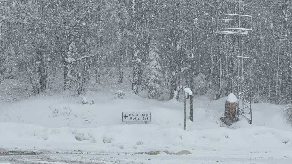 Türkiye’nin önemli geçiş güzergahlarından olan Bolu Dağı’nda cumartesi günü başlayan kar yağışı sürüyor.