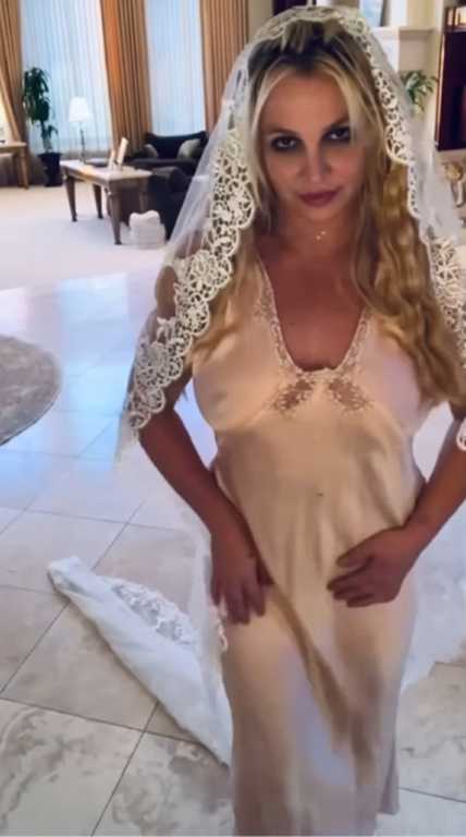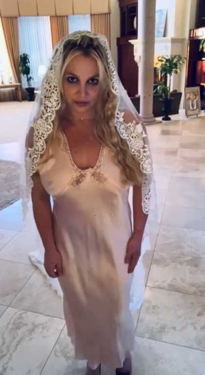 Gelinlik giyip duvak takan yıldız, yeniden evlendiğini duyurdu. Ancak Spears, kendisiyle evlendiğini açıklayarak kafaları karıştırdı.