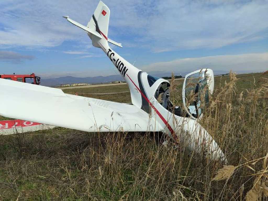 Bursa Yenişehir Havalimanı'nda pistten çıkan eğitim uçağının pilotu yaralandı.