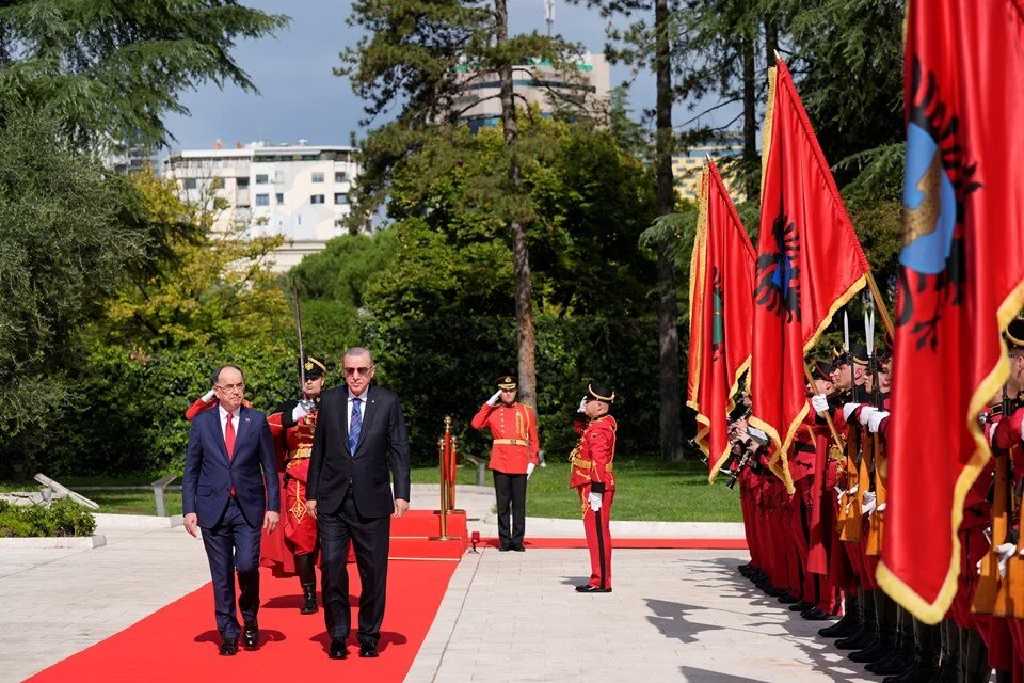 Cumhurbaşkanı Erdoğan, Tiran Uluslararası Rahibe Teresa Havalimanı'nda Arnavutluk Başbakan Yardımcısı Belinda Balluku, Dışişleri Bakanı Igli Hasani ve diğer hükümet yetkilileri tarafından törenle karşılandı.
