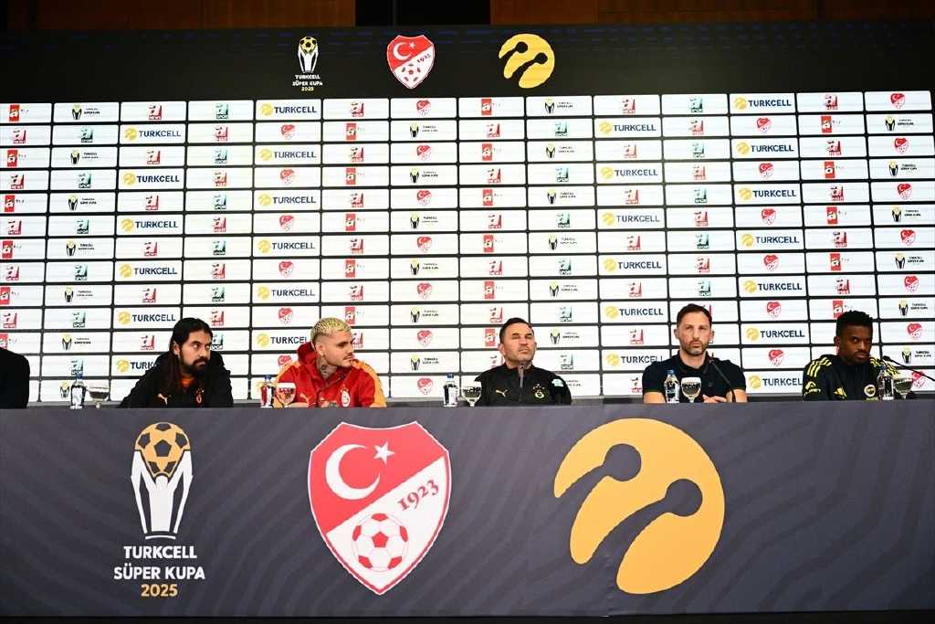 Galatasaray ile Fenerbahçe arasında yarın oynanacak 2025 Turkcell Süper Kupa finali öncesi basın toplantısı düzenlendi. Galatasaray Teknik Direktörü Okan Buruk ve Fenerbahçe Teknik Direktörü Domenico Tedesco, mücadeleyle ilgili değerlendirmelerde bulundu. İki teknik adama yöneltilen “Maçın başka bir stadyumda oynanmasını ister miydiniz?” sorusuna verilen yanıtlar dikkat çekti.
