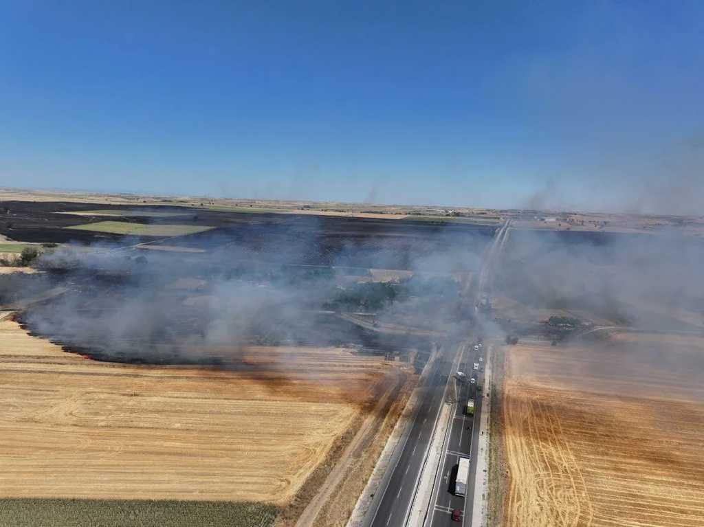 Edirne'de tarım arazisindeki yangın nedeniyle karayolu trafiğe kapandı.