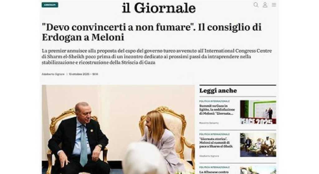 Cumhurbaşkanı Recep Tayyip Erdoğan’ın, Mısır’da düzenlenen Şarm el-Şeyh Barış Zirvesi marjında İtalya Başbakanı Giorgia Meloni’ye esprili bir dille yaptığı sigara uyarısı, İtalya ve dünya basınında geniş yankı uyandırdı.