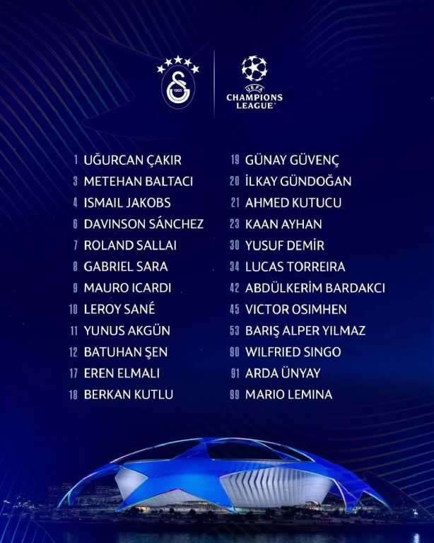 Sarı-kırmızılılar, Devler Ligi'nde mücadele edeceği kadrosunu UEFA'ya bildirdi.