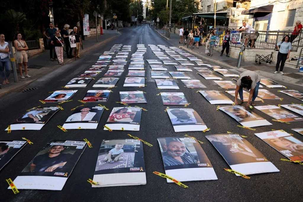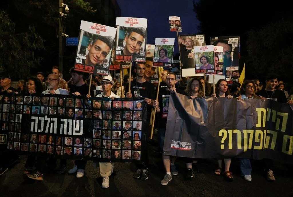 Rehinelerin fotoğraflarını taşıyan kalabalık, "onları eve getirin" sloganları attı.