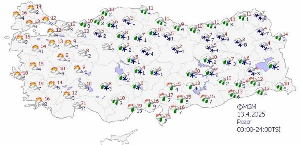 Kıyı kesimler ile Güneydoğu Anadolu'da yağmur ve sağanak, iç ve yüksek kesimlerde karla karışık yağmur ve kar şeklinde görülmesi beklenen yağışların, Bolu, Bartın ve Karabük çevreleri ile Kastamonu kıyılarında kuvvetli olacağı tahmin ediliyor. Sabah ve gece saatlerinde iç ve doğu kesimlerde buzlanma ve don olayı bekleniyor. Doğu Karadeniz’in iç kesimlerinin yüksekleri ile Doğu Anadolu’nun yüksek ve eğimli alanlarında çığ tehlikesi bulunmaktadır.