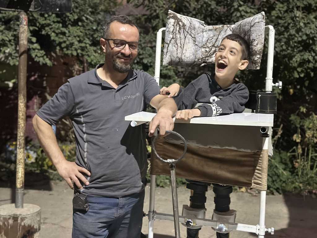 Demir doğrama işini yapan Budak, Ahmet'in yüzündeki sevinci görmek için kendi atölyesinde ona özel engelli ayakta durma sehpası yapmaya başladı.