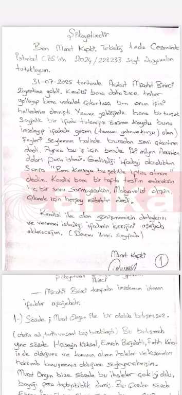 ANKA Haber Ajansı tarafından paylaşılan dilekçede, Birinci’nin Kapki’ye “Kendini bana bir hafta teslim edeceksin, soru sormayacaksın, çıkmak için her şey mübahtır” dediği iddia edildi. Kapki, bu girişimin hukuka aykırı olduğunu ve reddettiğini aktardı.
