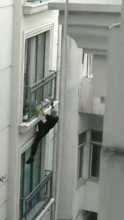 İstanbul'un Beyoğlu ilçesi Sururi Mehmet Efendi Mahallesi'nde dün sabah saatlerinde yaşanan olayda sokak üzerinde bulunan bir apart oteli gözüne kestiren hırsız, yukarıya tırmandı. Şahıs ardından girdiği odadan çanta çalarak aşağıya attı. Hırsızın korkuluklardan sarkıp çantayı attı o anlar kameralara yansıdı.