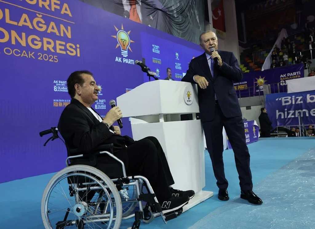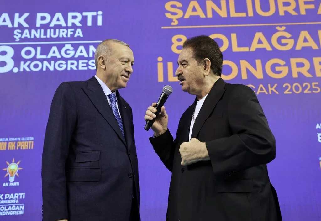 Cumhurbaşkanı Erdoğan, partisinin Şanlıurfa 8. Olağan İl Kongresi'ndeki konuşmasının ardından sevilen şarkılarını seslendiren sanatçı İbrahim Tatlıses'e eşlik etti. Erdoğan, Tatlıses’in, “Önümüzdeki dönem aday mısınız?” sorusuna da yanıt verdi.
