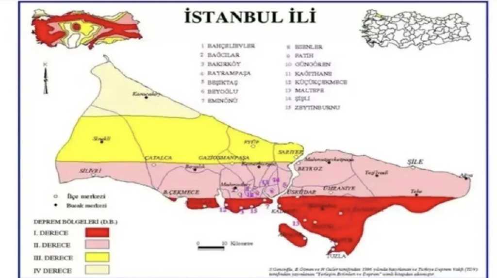 Bu nedenle İstanbul’daki ilçelerin büyük bir kısmı 1. ve 2. derece deprem riski taşıyor. Risk, fay hatlarına yakınlık ve zemin yapısına göre değişkenlik gösteriyor.