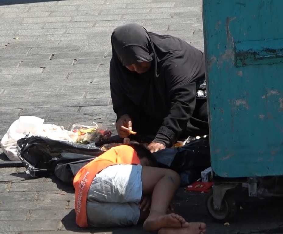 Kadının ve çocuğun durumuna acıyan turistler ise dilenciye para verdi.