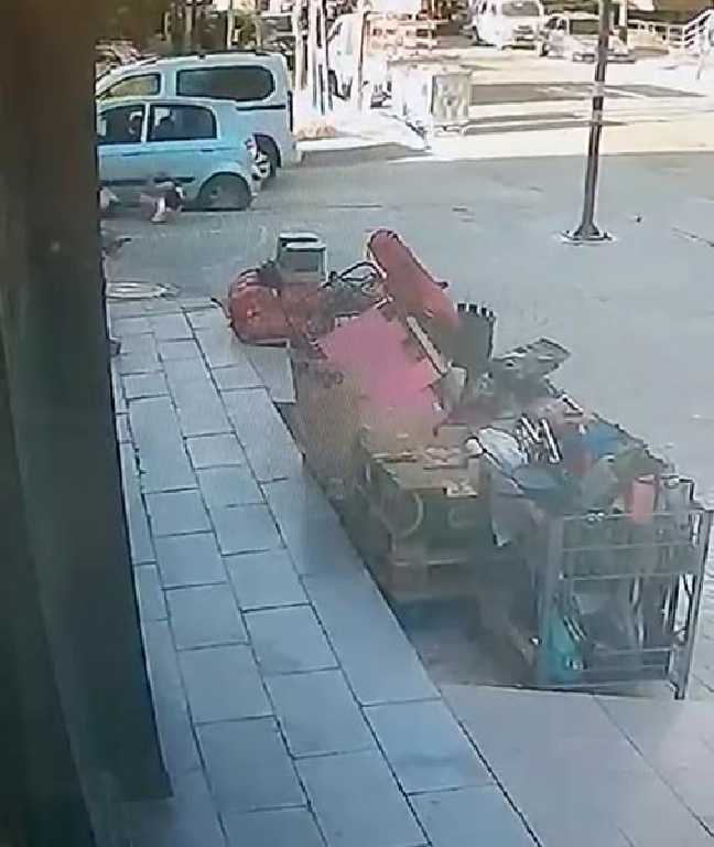 Beylikdüzü'nün Kavaklı Mahallesi'nde caddeden sokağa dönen bir otomobil, önce kaldırımda oturan çocuklara ardından bir iş yerine, sonra da park halindeki araca çarptı.