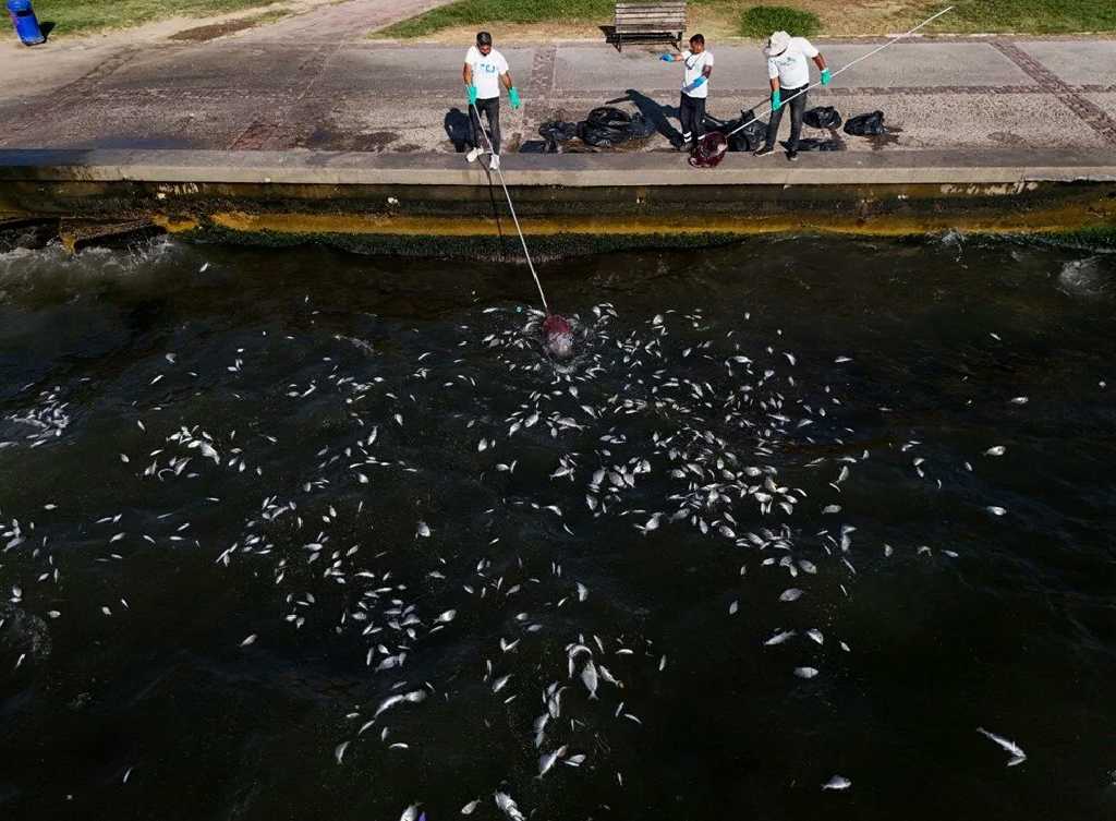 İzmir Büyükşehir Belediyesi ekipleri ise denizdeki ölü balıkları toplamak için çalışma yürütüyor.