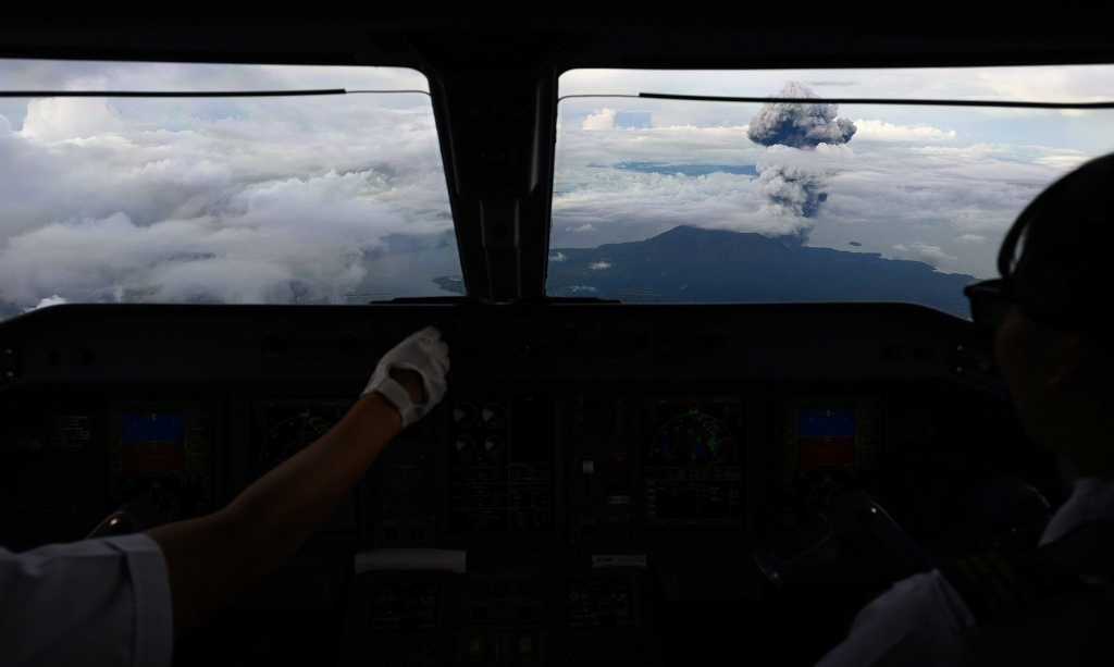 Japonya'daki Sakurajima Yanardağı’nda meydana gelen patlamanın ardından ortaya çıkan ve 4 bin 500 metre yüksekliğe ulaşan duman ile volkanik kül, bir yolcu uçağının kokpitinden görüntülendi.
